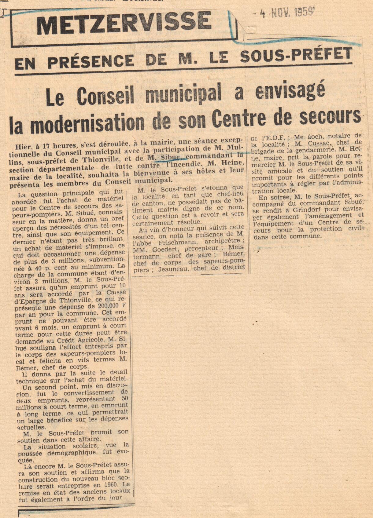 Un nouveau centre de secours, nous étions en 1959 !