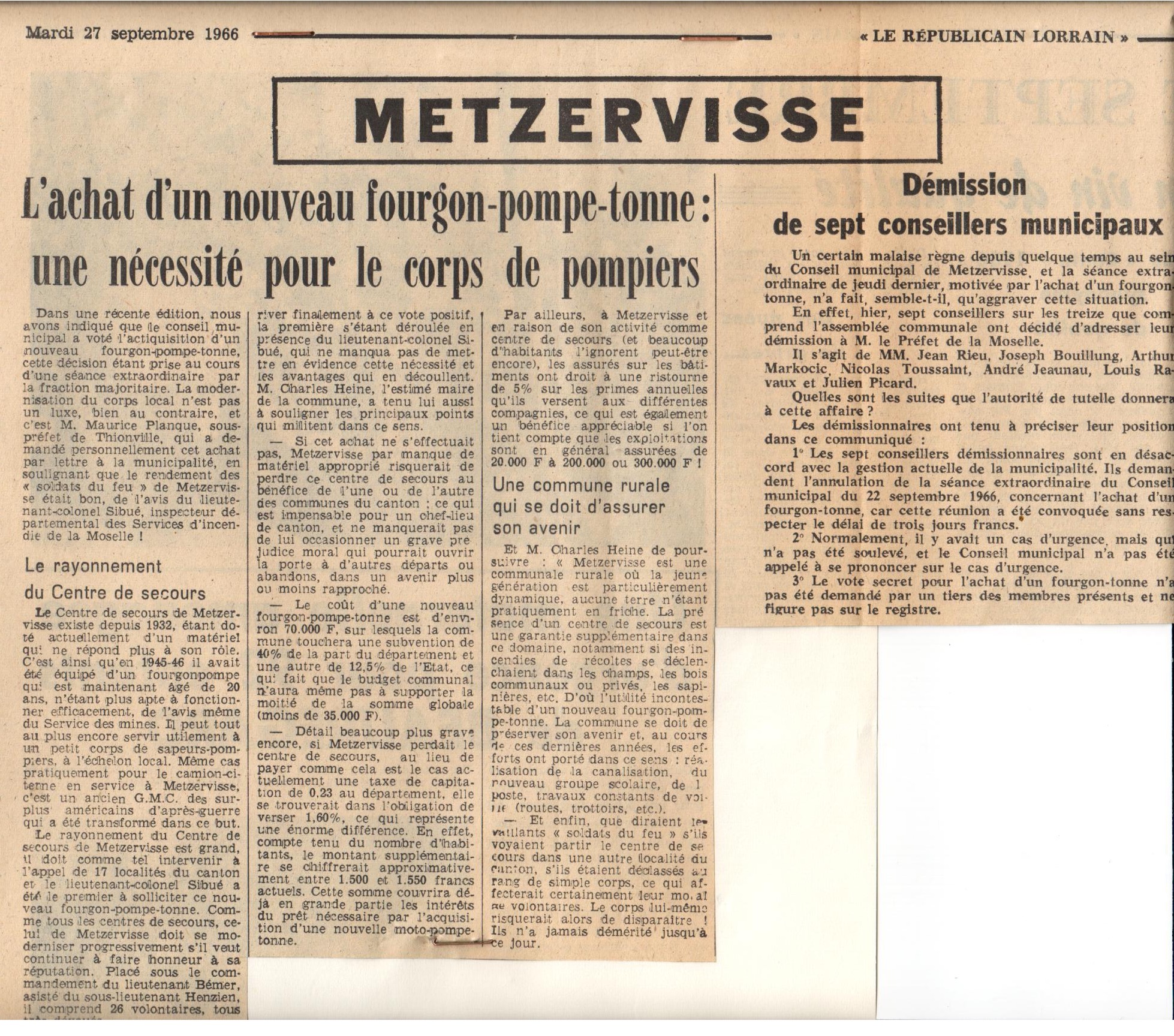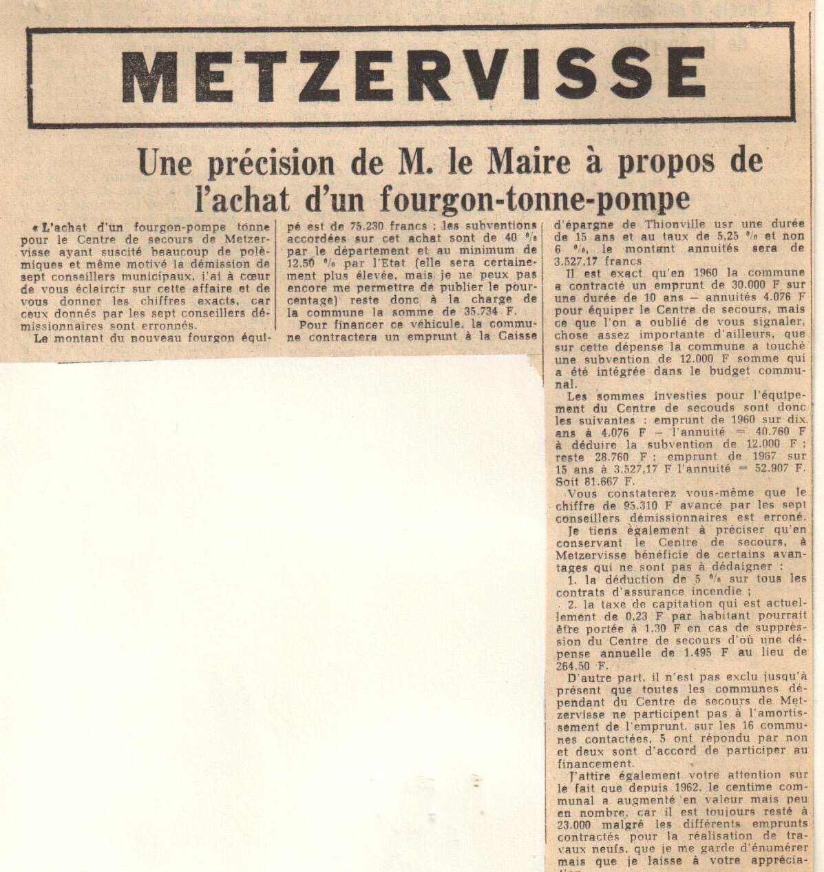 METZERVISSE à l'honneur, malheureusement pas de date pour cet article